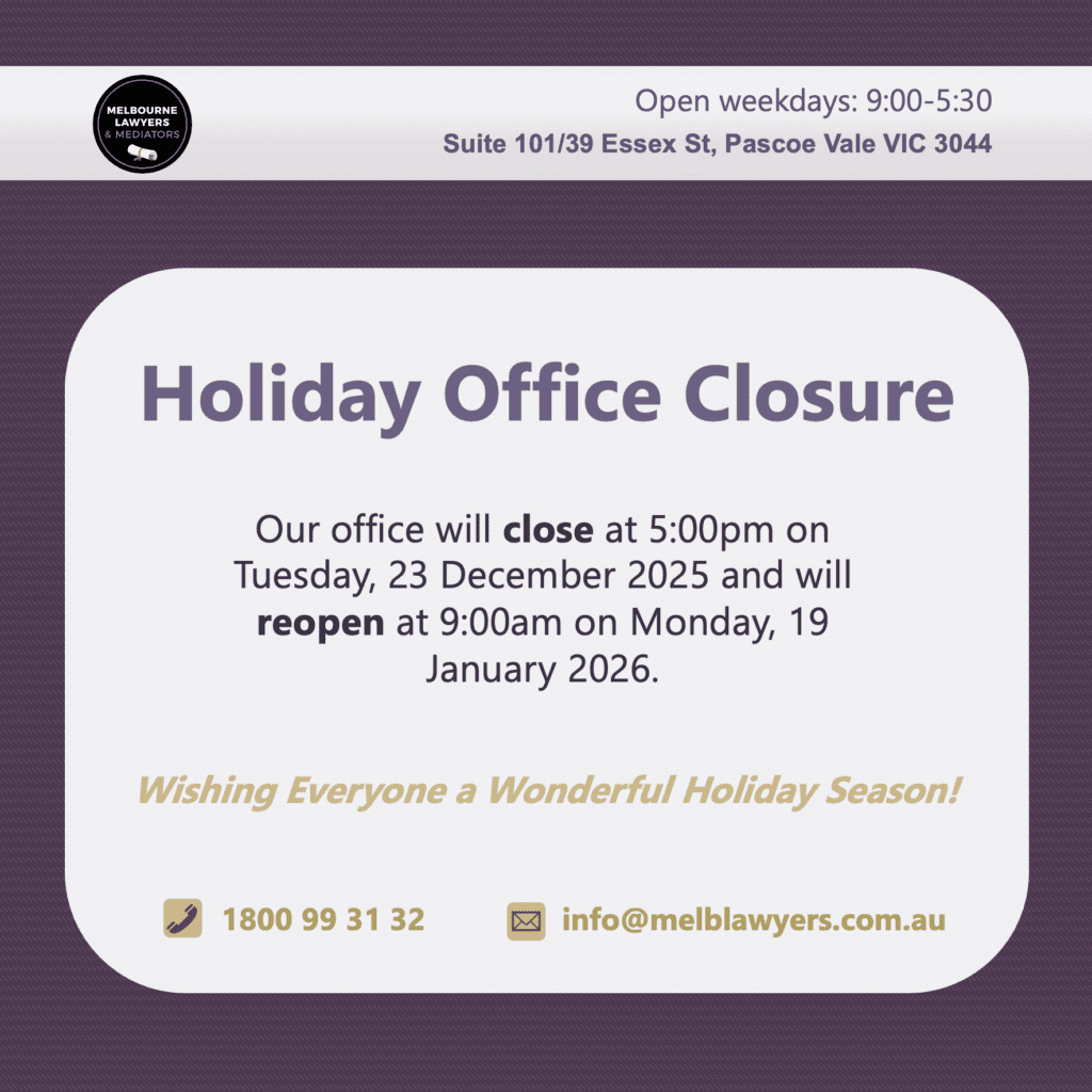 Our office will close at 5:00pm on Tuesday, 23 December 2025 and will reopen for the new year at 9:00am on Monday, 19 January 2026.
