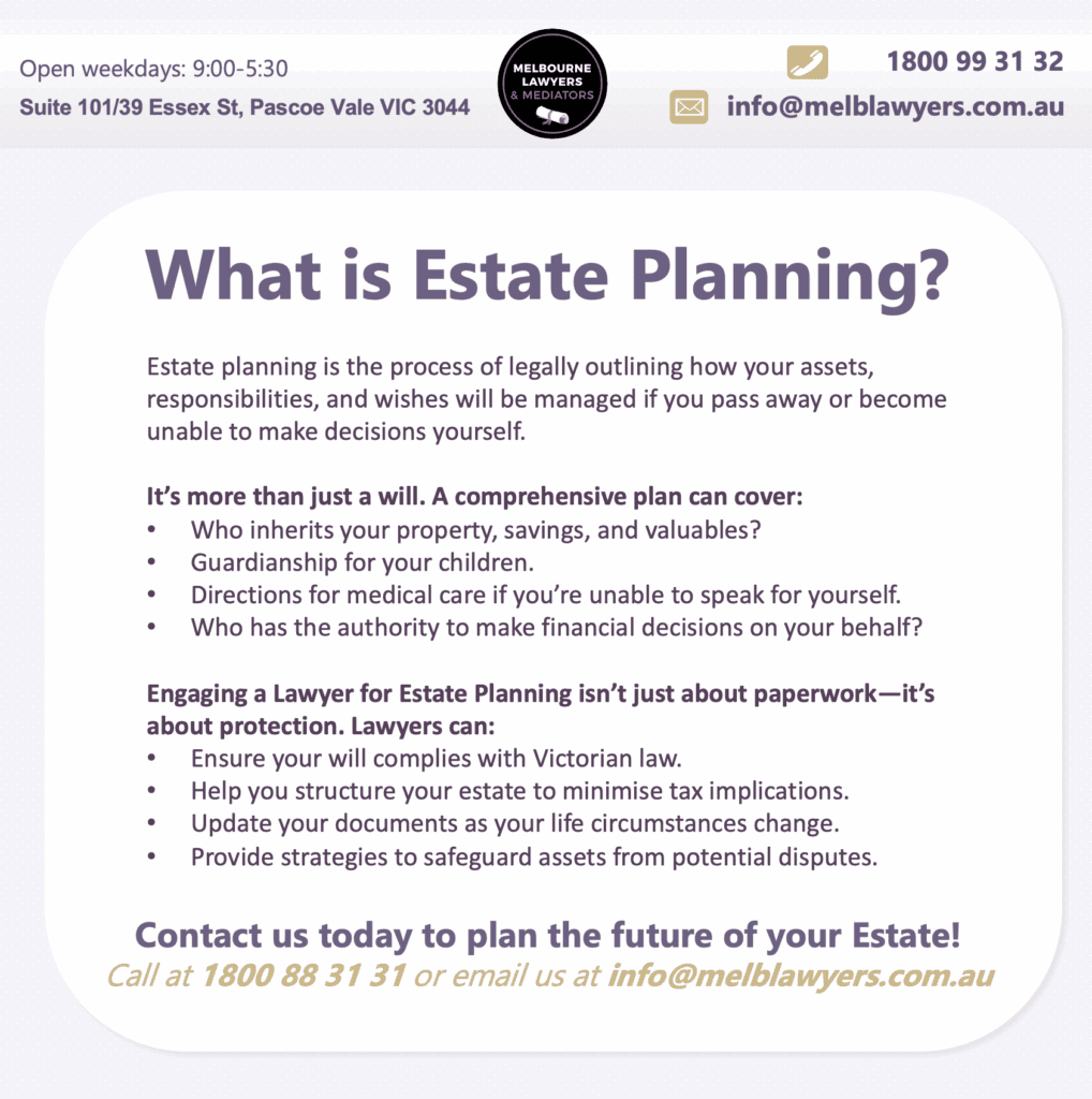 - Ensure your will complies with Victorian law.